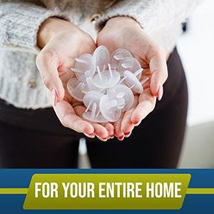 INSTALL IN SECONDS, just insert the safety caps into the unused outlets, and the plug protectors will securely fit in place.