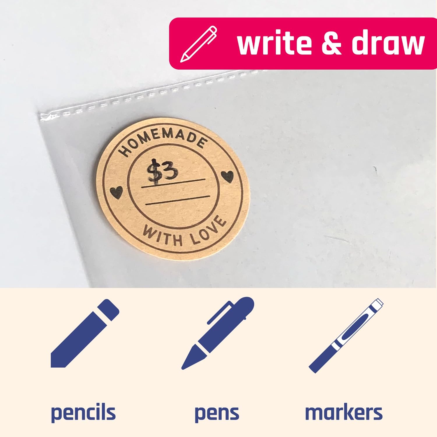 Self-adhesive stickers. Sticks great on cards, boxes, packaging and almost any flat surface.
