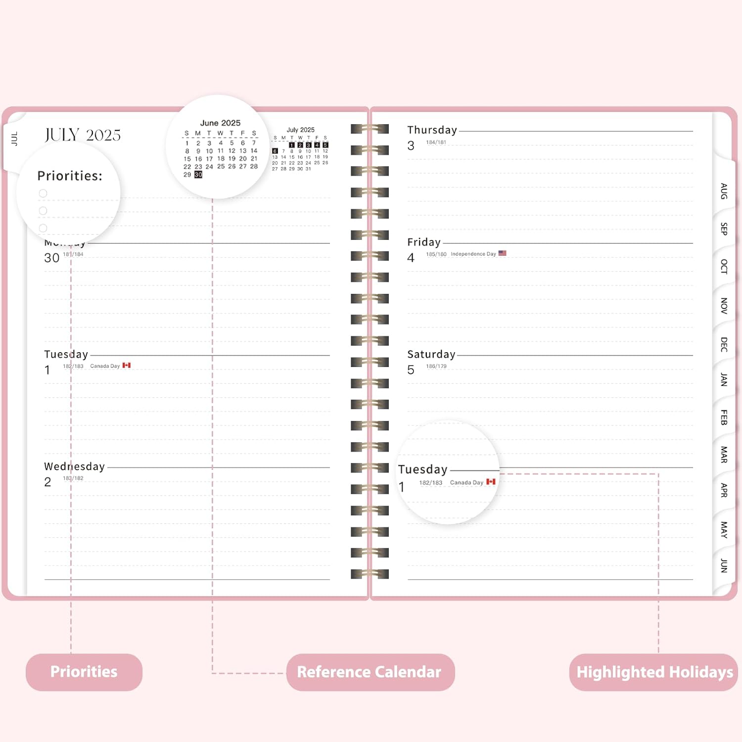 - [COMPREHENSIVE PLANNING] – The planner july 2025-2026 includes not only weekly and monthly layouts but also a reference calendar, contact page, important date page, and holiday list, making it an ideal office school supplies.