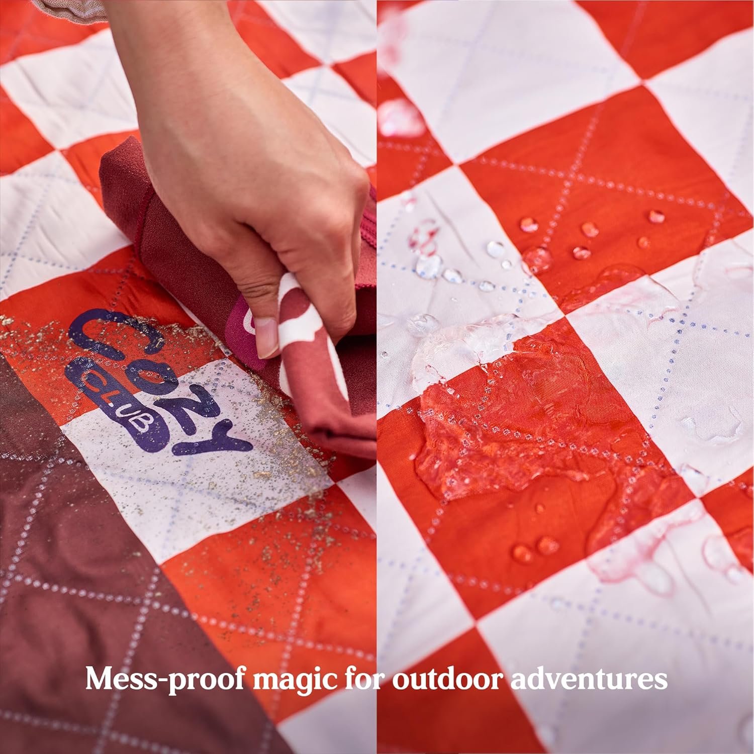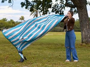 WATERPROOF & DURABLE BEACH MATOur picnic blanket has a waterproof bottom that prevents moisture from seeping through, ensuring you stay dry even on damp grass or wet sand