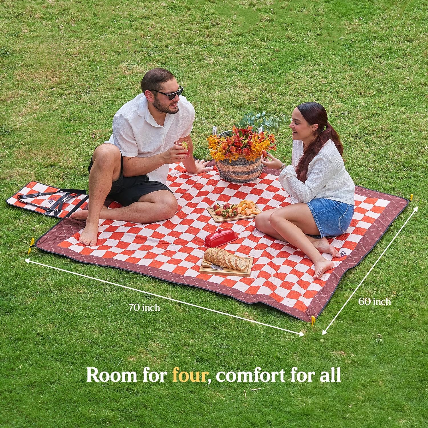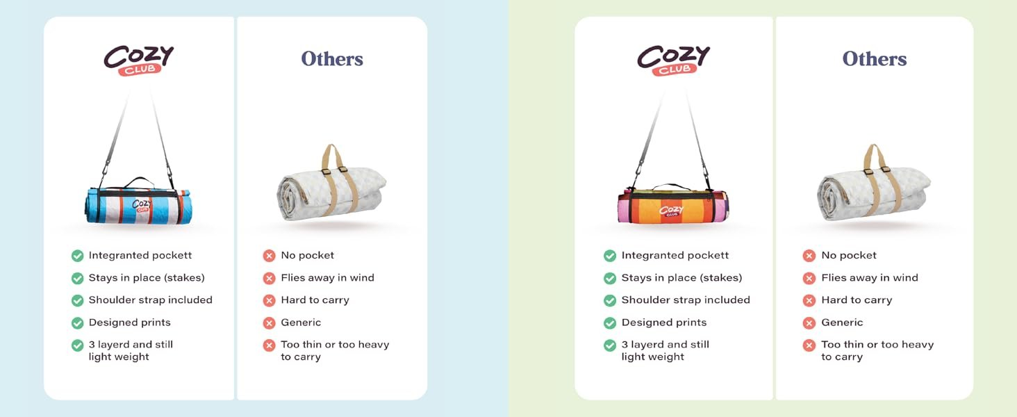 PERFECT SIZE OUTDOOR BLANKETOur large picnic blanket measures 60×70 inches, offering plenty of space up to 4 people. Ideal for any outdoor adventure