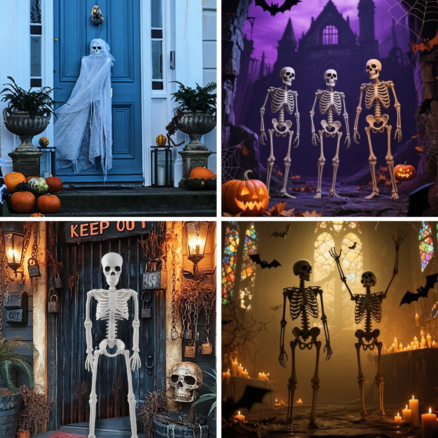 Versatile Decoration: Perfect for Halloween night, these skeletons can be used in haunted houses, graveyard setups, gardens, patios, porches, schools, offices, and parties. They also work for Day of the Dead celebrations or Gothic-themed decor.
