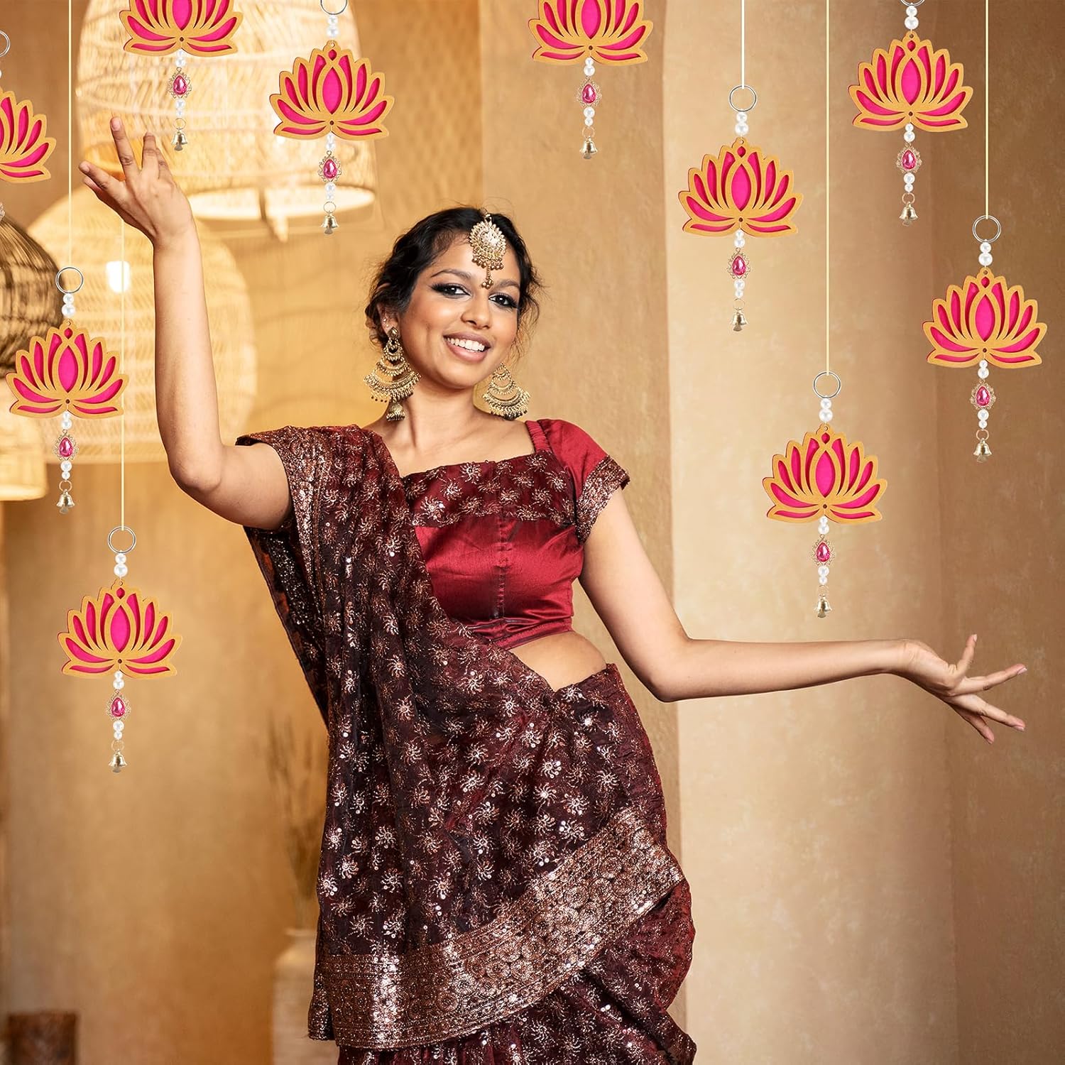 Features: Designed with pearls, lotus, and bells, adding an delicate detail to these garland Indian decor, elevate the aesthetic appeal of the garland, bring a touch of elegance to your celebrations. With auspicious symbolism, the lotus hangings for decoration Indian..