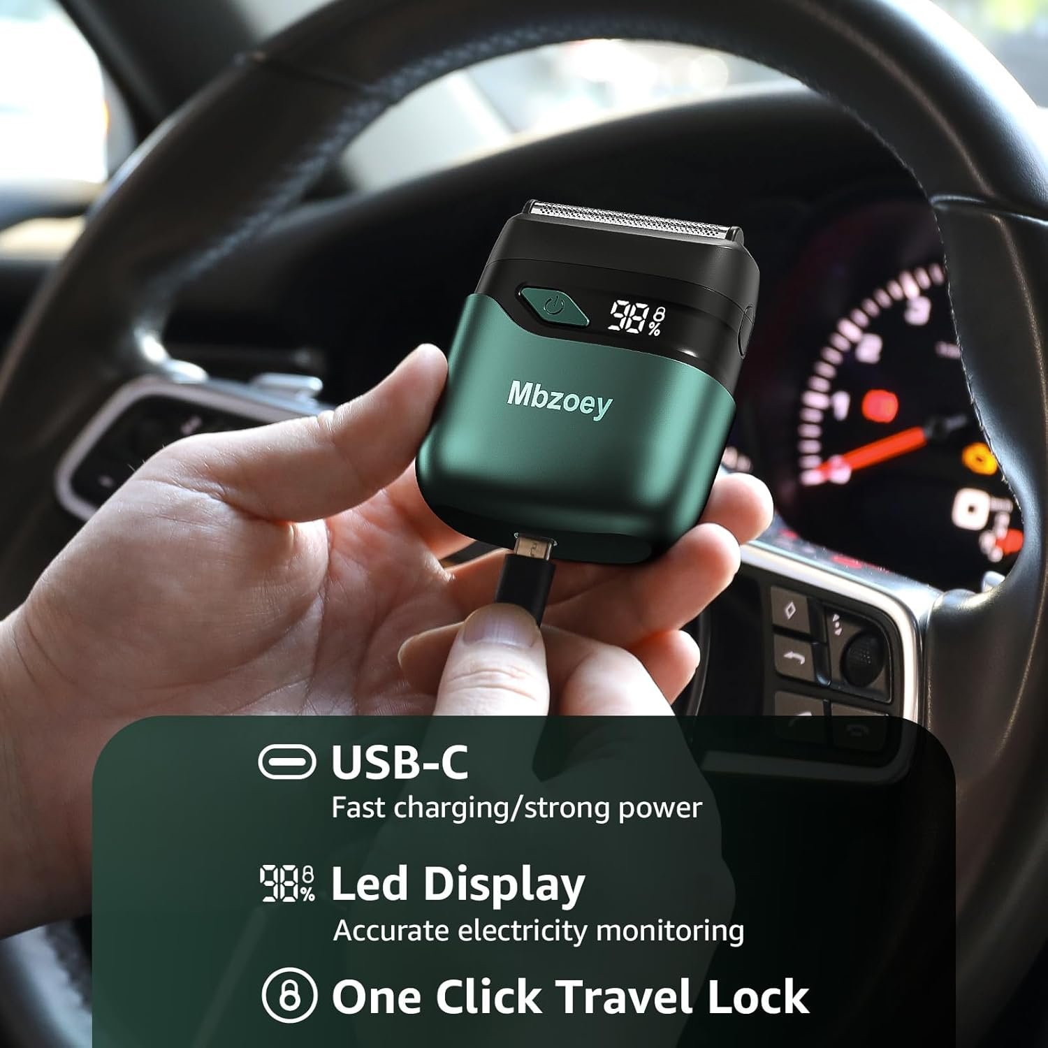 LED Fast Charging: Men’s emerald green electric shavers feature upgraded LED battery display for real-time power monitoring. With USB-C portable charging technology, 90-minute charge delivers 100-minute cordless runtime. Smart voltage adaptation enables rapid charging in vehicles/airports