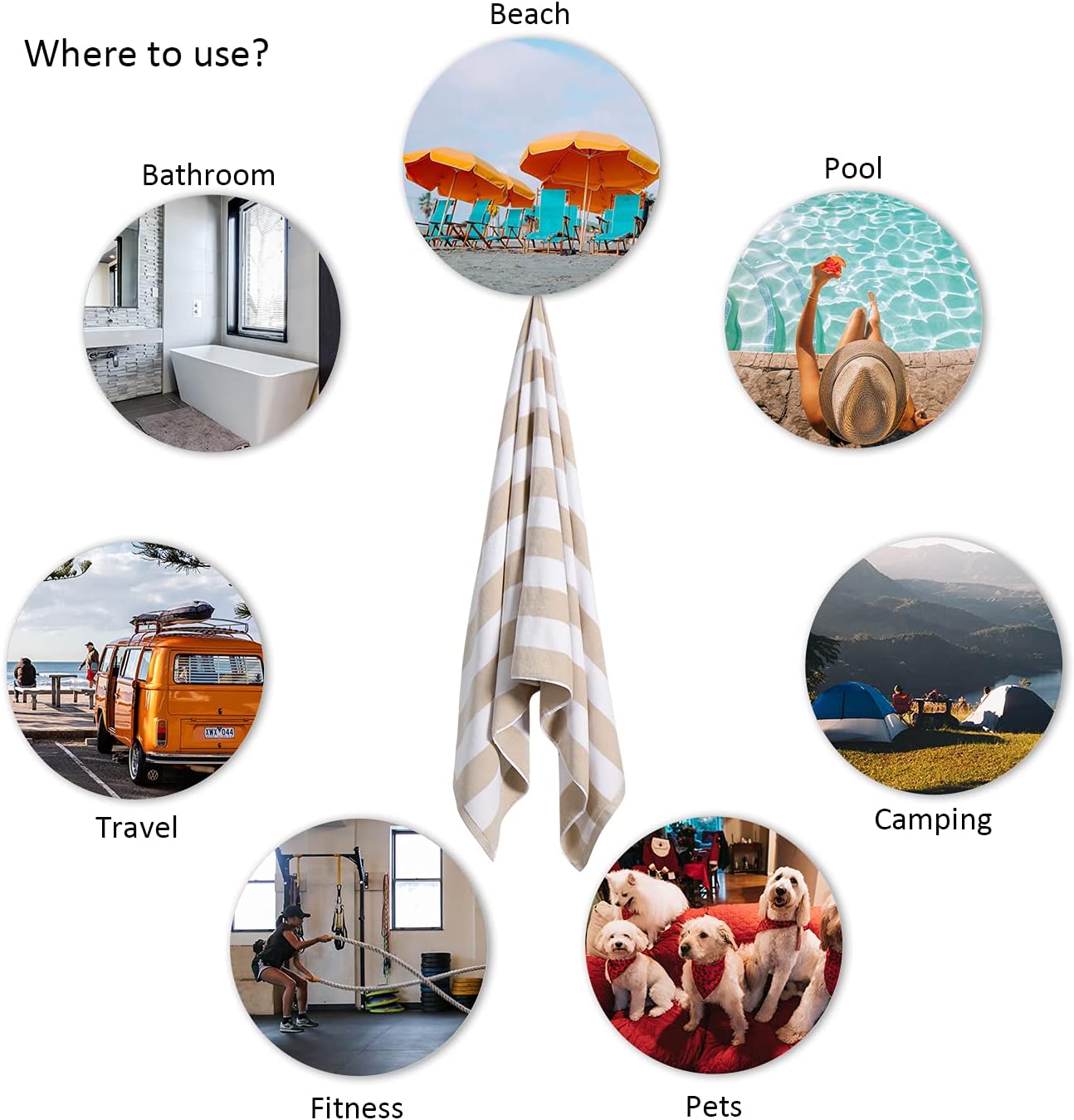 OVERSIZED BEACH TOWELS FOR ADULTS – Extra large beach towel for men and women which size is 36 x 70 inches, xl beach towel allow to use anywhere you desire with comfort and space,it can be thick fluffy beach towel beige,mens beach towel,pool towel oversized bath towels,swim towel,shower towels,camping towel,travel towel and more uses as you need;