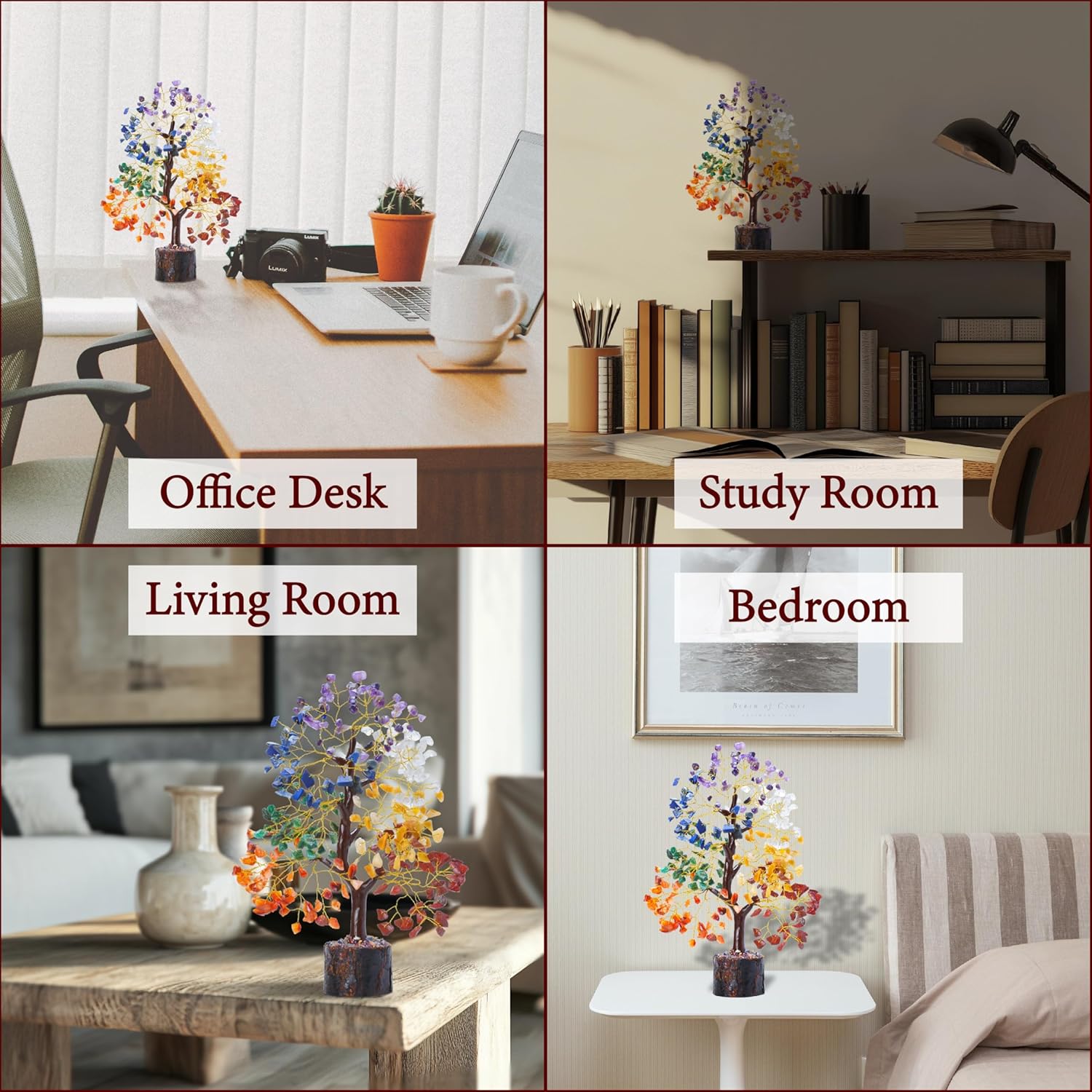 ATTRACTS WEALTH & GOOD LUCK — UNIQUE DESK OR BOOKSHELF DECOR Designed to enhance success in workspaces. Stable wooden base with adjustable branches (arrives folded for safe shipping).