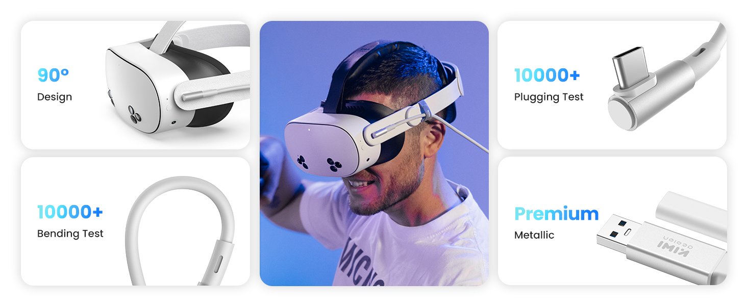 Review: Do you hate running out of charge? Do you despise spending insane money on Meta’s official link cable? Find that any other link cable you use seems to never output near enough power to actually keep you charged, so 3 hours in you run out, despite the fact you’re tethered, so you still need a power bank to continue on your VR adventures, which also means needing to switch back to wireless which causes bit rate artifacting and is annoying? Well, then look no further and take this cable for a whirl!EDIT: Okay, had this cable for a few months, still works good for what I use it for. It still keeps my headset charged, it’s still a very well built cable, but it still has the issue of…cable. Over time it’s twisted up, and now has a very odd issue where it creates these small lines across the lower part of my screen. It’s a tad annoying, I get used to it, but like any cable…expect to replace eventually because these things get twisted easy. The good thing is though, Kiwi is THE 3rd party for Quest 3’s and I bet you they are good with a warranty. If I remember right it has over a year of warranty, so…hey take advantage of that. If I could rate this a 4.5/5 I would. It’s still the standard for Quest 3 link cables in my opinion, but maybe now I won’t be rating any link cable a 5 until this issue is not an issue.The way this cable works is you have both the USB-A (in the fastest port for data transfer you have on your PC) and the USB-C connected to a wall outlet (the power brick NEEDS to be 45 Watts or higher, I recommend a 65 Watt brick), plug the USB-C in first, plug it into the headset so it negotiates a higher charge speed from the brick’s wattage *very important, otherwise you WILL run out of power*, then plug the USB-A end into your PC, and then you’re golden. At that point, you should never run out of power when VR gaming, and maintain your wired connection. For $20 on sale, and $36 (which is a bit steep not gonna lie), this cable performs phenomenally. Kiwi puts out great accessories on the 3rd party end, comparable to Meta’s. 16 FT is fantastic for VR gaming, really nice to have the extra length, though 10FT is functional. Charge Speed is good, as I illuded to, but the goal is to stay fully charged and just never run out, which it does. I feel the cord feels heavier, and I like that it’s a rubber outer not mesh, so I would claim durability is better but the enemy of these cables is being twisted up. Be careful not to twist too much, but also, Kiwi does offer a warranty. If you want to do good PC linked gaming, do yourself a favor and get this cable or one designed like it.