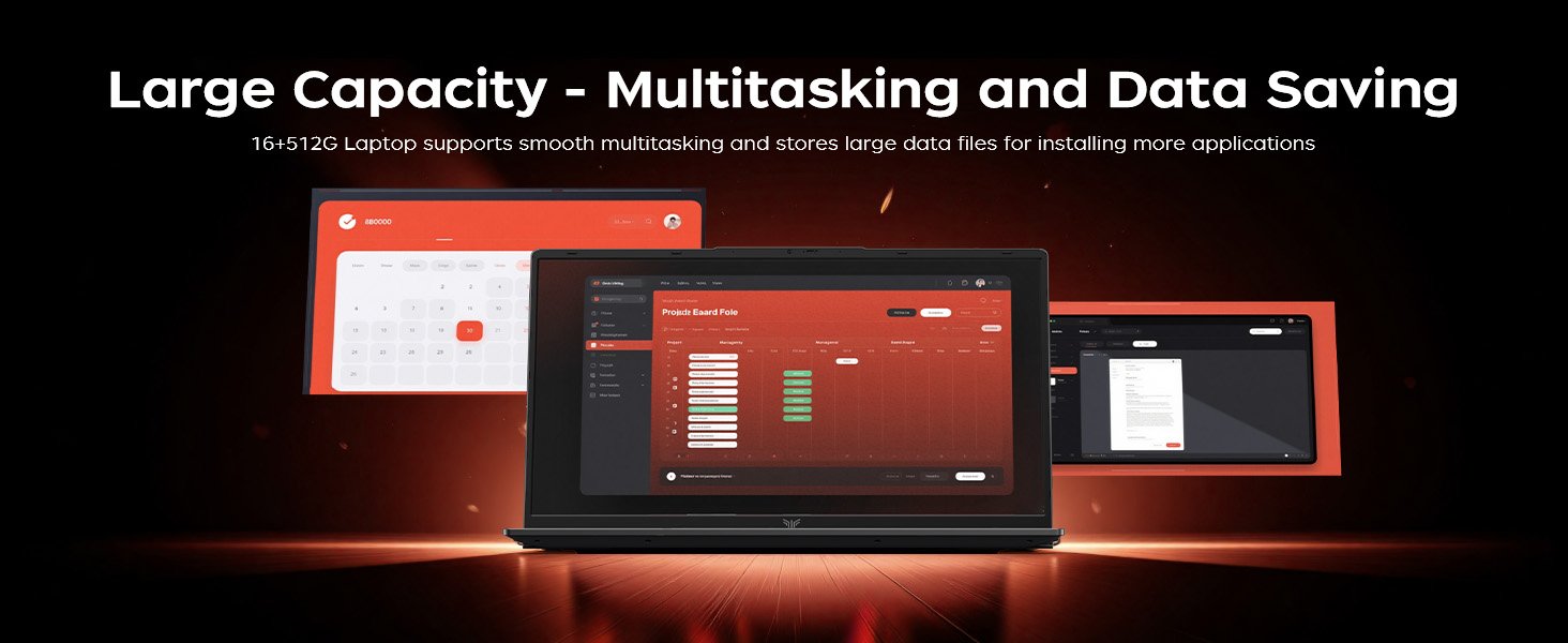 Massive Storage Expansion: The MALLRACE laptop comes standard with 16GB of memory and features two DDR4 SO-DIMM slots, expandable up to 64GB. Supporting DDR4 3200MHz frequency, it can handle multiple office applications simultaneously or edit large files during video calls. For storage, the 512GB M.2 2280 NVMe PCIe 3.0 SSD is paired with dual M.2 2280 slots compatible with NVMe PCIe 3.0 SSDs or SATA SSDs. Each interface supports up to 2TB capacity, enabling a maximum total storage of 4TB. This effortlessly accommodates vast amounts of office documents, daily video recordings, and movie collections.