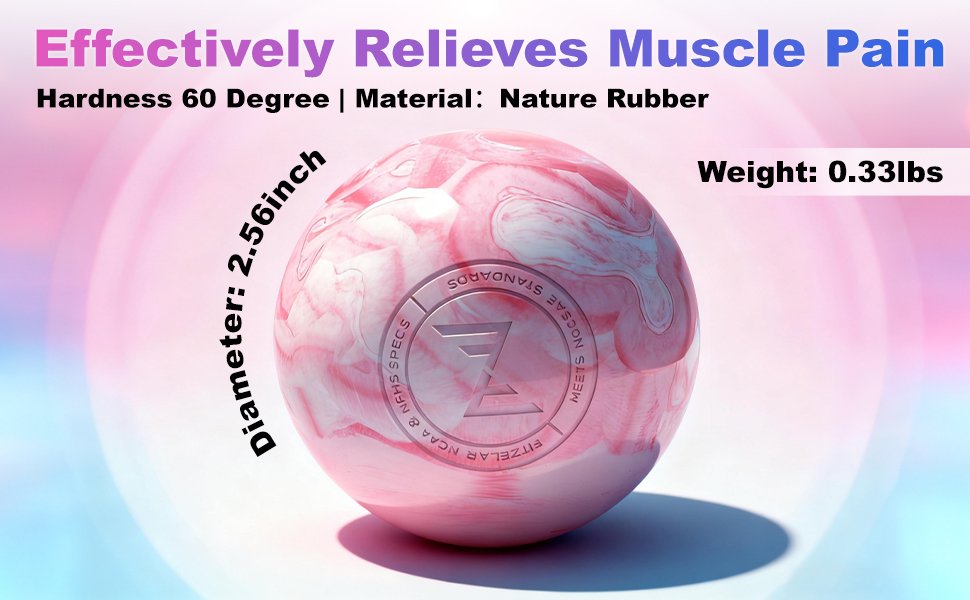 Effective Massage Design: 2.5″in diameter and weight in 5.5oz. This lacrosse massage ball has a hardness of 45 degree, with a single point of pressure that reaches directly to the fascia that surrounds the outer layers of the muscles, relieving muscle fatigue and pain in the legs, hands, arms, neck, back and feet.
