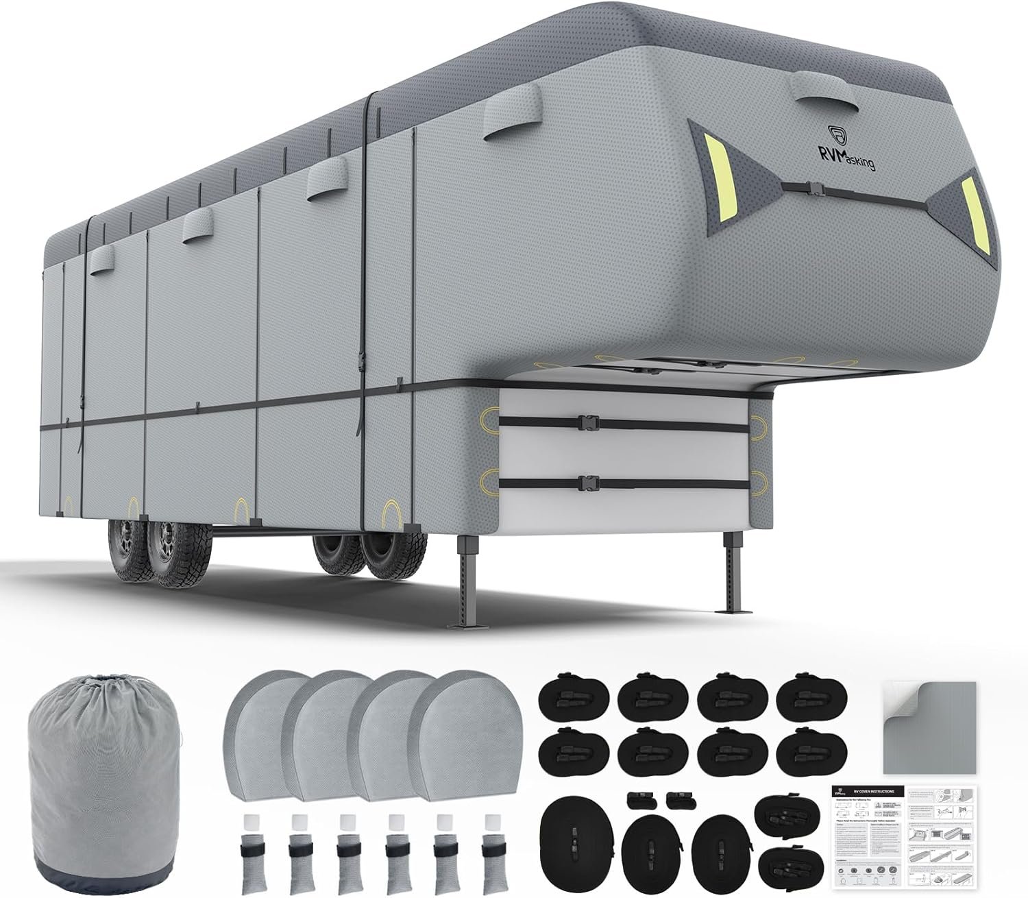 RVMasking Heavy-Duty 7-Layer Fifth Wheel Cover with Windproof Protection & Tire Covers