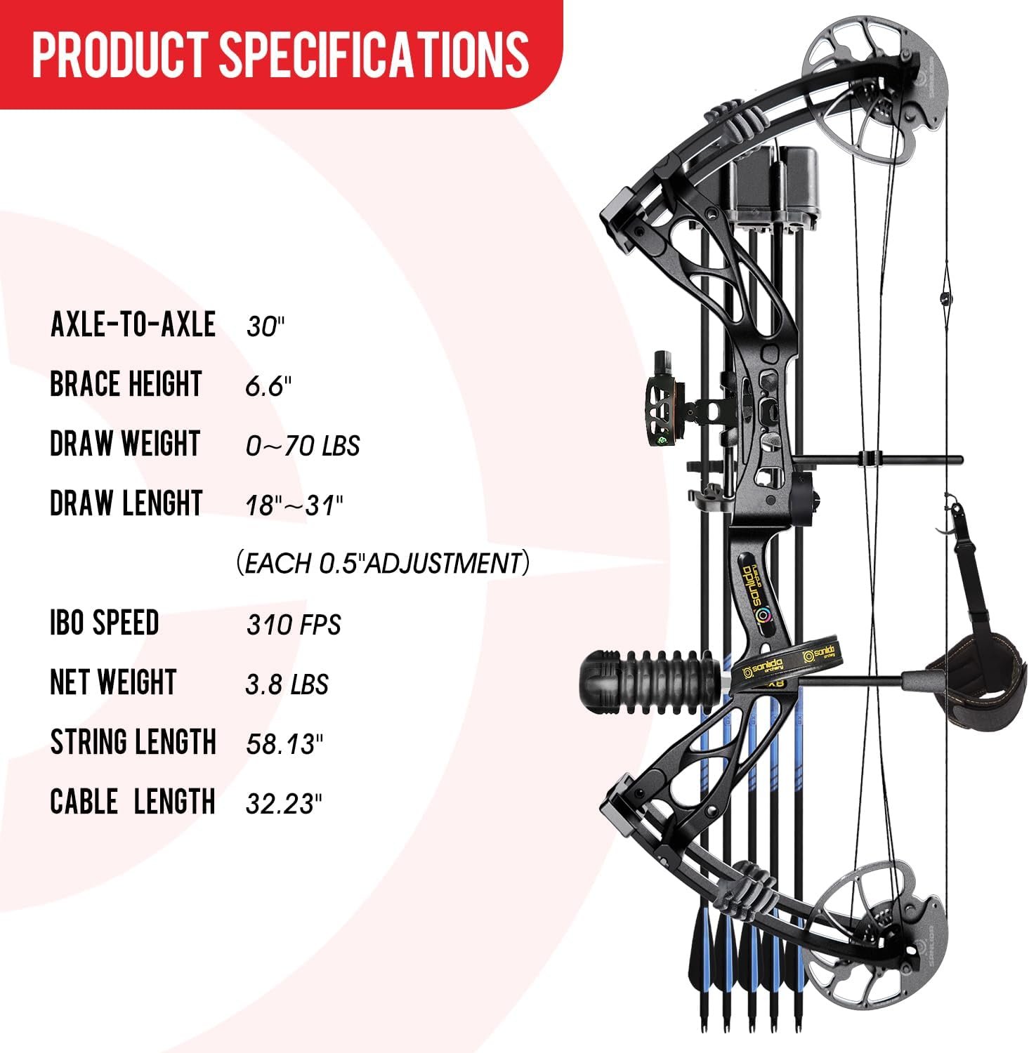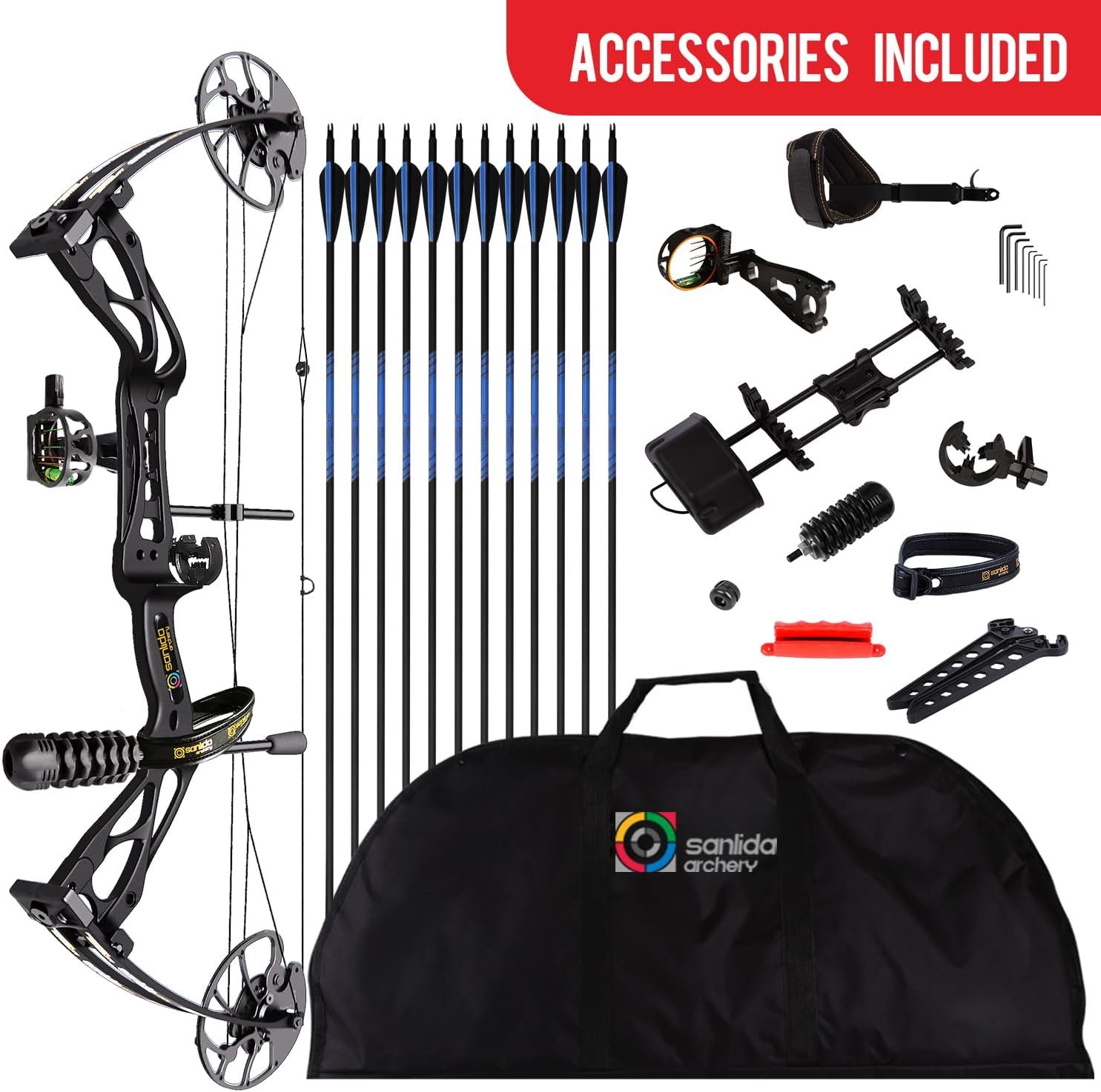 Reviewer: JCJR85 Rating: 5.0 out of 5 stars Title: Good quality equipment for a very good price. Review: The beauty of this product is that it has everything you need in the box to set it up and get shooting. The price point is also very good for what you get. A lot of reviewers describe this as “entry level” or “beginner” but I happen to think that this diminishes the quality and capability of what you are getting right out of the box. If you are in the market for a compound bow, don’t want to spend an arm and a leg, and you are going to be using it for everyday target shooting or hunting, this product is perfectly suitable for those endeavors. Unless you are a competitive archer or such, this should be sufficient for the vast majority of people.The Good:. Price is reasonable. Build quality is good – it doesn’t feel like a toy or super cheap. It has everything you need to get loosing off, right out of the boxThe Neutral. Some of the accessories are not necessarily the best but this comes down to personal preference. I ordered the following per my personal needs:- a different arrow rest/whisker biscuit.- 12 extra arrows and some hunting arrow heads.- A range finder to aid with sighting in- A cheap arrow quiver- A 4 finger release to replace the wrist release that it comes with.The Needs Improvement. I didn’t think much of the included instructions, and the online instructions were identical with no more detail. You really need to do your own googling and Youtube if you need instructions or a guide to tuning the bow and installing accessories. They do provide instructions on increasing the draw weight and changing the draw length, but that’s about it. You’re on your own for installing accessories, sighting in the sight, and fine tuning. So be aware, this is not a toy and does require some research for beginners with compound bows or bows generally, or adult supervision for teens/children.Overall I am very satisfied. Reviewer: Allan Grossmann Rating: 5.0 out of 5 stars Title: Outstanding Value and Quality for Beginners and Beyond! Review: As someone who shot Hoyt recurve bows for over 30 years, I was initially skeptical about trying a compound bow, especially one at the budget-friendly price of the Sanlida Dragon X8. But after reading positive reviews, I decided to give it a shot—and I’m so glad I did!The Dragon X8 far exceeded my expectations. The build quality is impressive, especially considering the $199 price tag. The bow comes with everything you need to start shooting, and all the components are solid and reliable. The sight, for example, performs much better than you’d expect for this price range, holding its own against higher-end models.Even as a complete beginner to compound archery, I was able to shoot with surprising accuracy right out of the box. The bow is smooth, forgiving, and feels great in the hand. It’s the perfect choice for anyone new to compound archery or looking for a quality bow without spending a fortune.To top it off, Sanlida’s customer support is exceptional—quick, helpful, and always ready to answer questions. This bow made me confident enough to eventually upgrade to their Hero 10 II, but I still recommend the Dragon X8 for its unbeatable value and performance.Whether you’re starting out or looking for a budget-friendly option, the Dragon X8 is a fantastic choice. Highly recommend! Reviewer: rfd Rating: 5.0 out of 5 stars Title: THIS is the compound bow for both beginners and pros alike! Review: The Sanlida Dragon X8 is without a doubt the absolute BEST compound bow value for ANY archer – beginner or pro – and I’ve been both a target and hunting archer for 71 years.The bow itself is at the core of its price point value.That it’s bowstring is already set up with a “D” loop and peep sight is much added value for a beginner to compound archery that doesn’t have access to a bow press. This alone is huge as most “high end” brand name compound bows offer neither. If a bow press and knowledge aren’t handy, then the bow owner will incur an added expense to have the bow set up at an archery shop.That a replacement DF’97 bowstring costs less than $35 is amazing! The bowstring and cables can be changed WITHOUT a bow press, by completely backing off the limb bolts. The use of a portable bow press will just make that job faster and without having to reset the limb weight back when done.The sight is quite functional and does not need to be replaced. The whisker style 3 point arrow rest is also excellent just as it is. The finger release aid is functional and very good for a starting archer, as are the supplied arrows (they are Great for a new archer but they are way too heavy, stiff, and out of round for real accuracy; no problem for a beginner!). The stabilizer is quite functional. Whether or not to use the bow sling is personal – I and most other archers will not need one.Most seasoned archers will modify their bow kit and I’ve made some necessary changes for vastly increased accuracy. I installed a QAD Ultra Hunter drop away arrow rest, for complete fletching clearance. I use Cross-X carbon arrows fletched with Spin Wings, and a B3 Exit Pro thumb release aid. The bow handle has been wrapped with medical compression tape to both insulate for warmth and added tackiness for gripping. The supplied 27″ draw length was increased to 29″ and the peak weight of the bow was increased to 52lbs. I also changed the sight to one I already had, but honestly that was not necessary!If you’re thinking about dabbling in cam bows, THIS is THE one to get – fantastic value and performance! Reviewer: Sue Rating: 5.0 out of 5 stars Title: Review: I received my Sanlida Dragon X 8 compound bow kit in June of 2003 and while I was immediately impressed with the bow and accessories I decided to wait until I got to experience it’s performance before writing a review.It’s now 6 months later and after hundreds of arrows down range