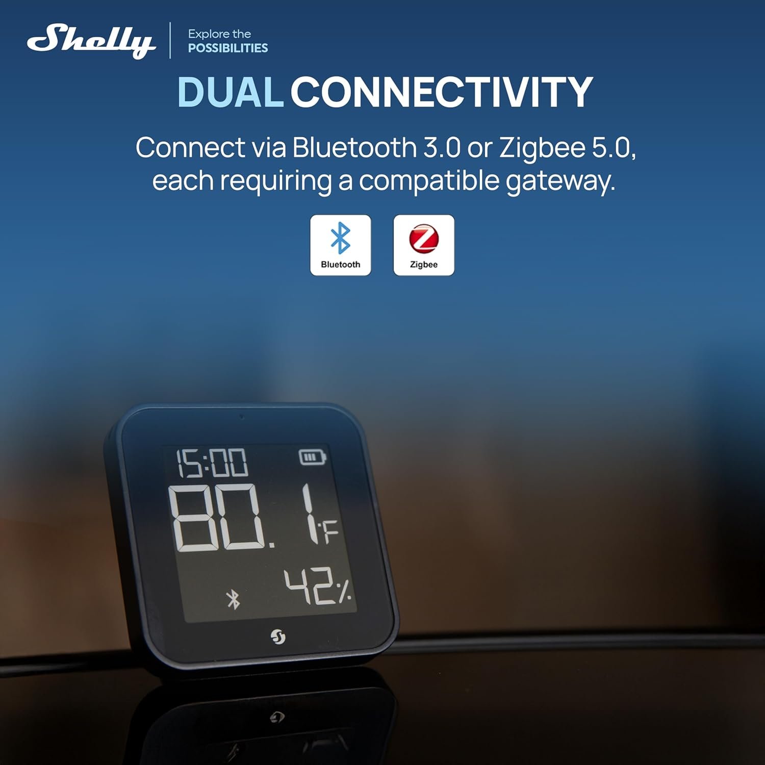 Shelly BLU H&T Display ZB Black, Bluetooth & Zigbee Operated Temperature & Humidity Levels Sensor, E-Paper Display, Home Assistant, Alexa, Google Home, Real-Time Monitoring, Long-Life Battery