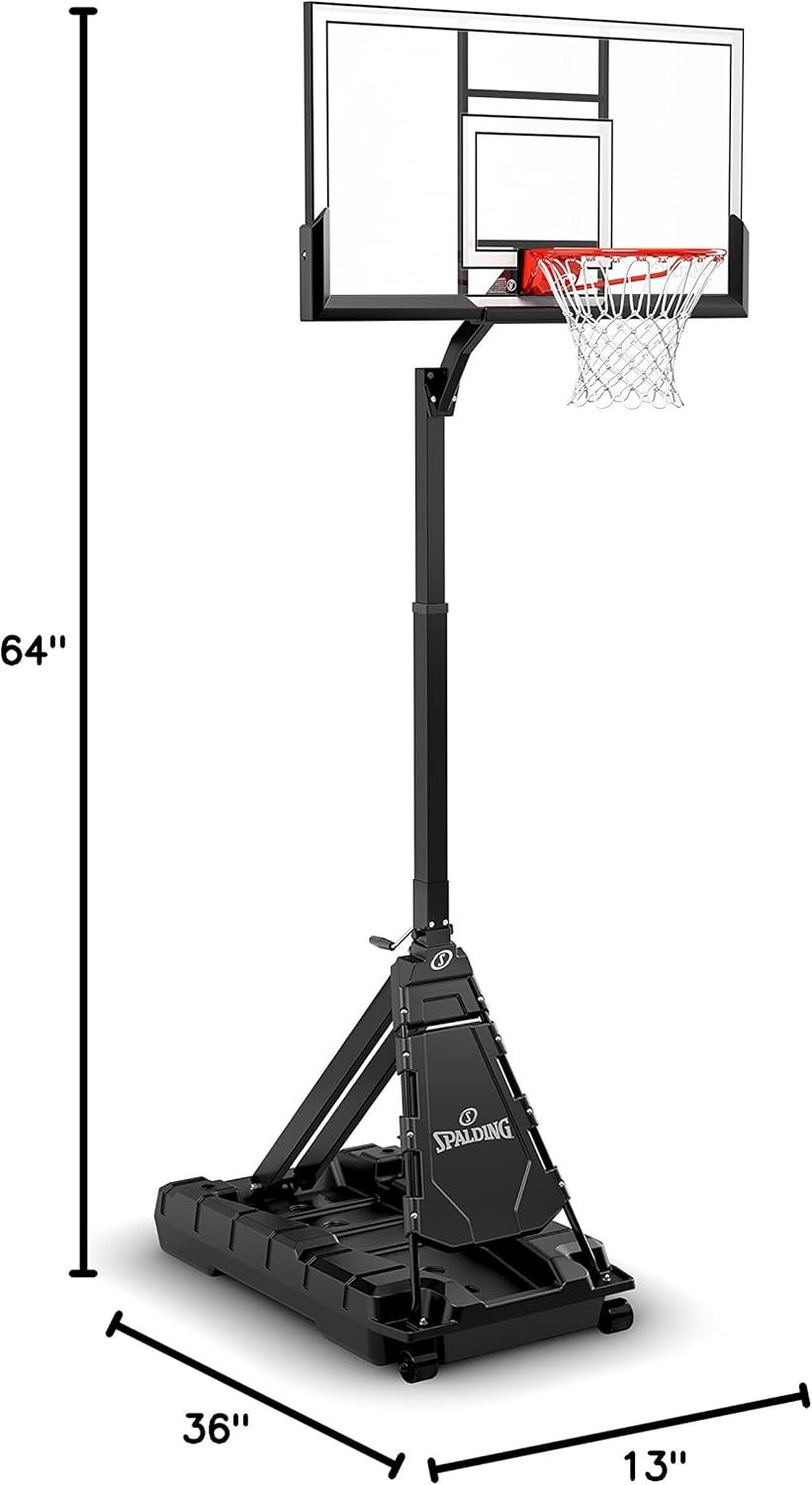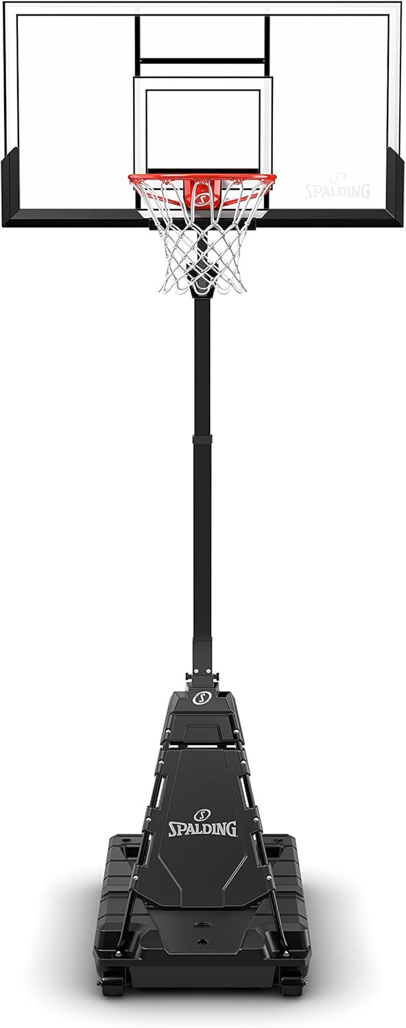 Reviewer: urma Rating: 5.0 out of 5 stars Title: Not 30 minutes, but definitely easy. Review: I bought this as a replacement for another Spalding hoop that was a multi-hour setup and breakdown. The setup on this is absolutely genius! The instructions were laid out very well, both via the video and printed booklet. I am a small (5’1”, 120lbs) but strong lady and I was able to completely unbox and begin the setup solo. There are definitely multiple steps that require 2 people – attaching the backboard and rim, and then raising the backboard and pole into the upright position and securing it. My 80yo 5’9” and in-shape father and I completed it without much difficulty (although a little more height on either one of us would have been helpful). In total it took about an hour, including unboxing, reviewing the video and written instructions, and then actually assembling the unit. All parts were packaged and labeled according to the associated step in the build. Nuts and screws threaded easily.This is a very sturdy unit with a large base and a pole/hoop that are situated more towards the center of the base. I filled the base with water and added 100lbs of sand on the rear of the base as extra precaution since it is on an ever-so-slight downhill slope. The raising and lower mechanism is so smooth my 11yo can do it with ease. My son loves the sound of the backboard, saying it doesn’t sound like the “cheap hoops some other kids have” 😆It’s more pricey than some other hoops, but in my opinion. the ease of assembly and overall sturdiness make the higher price worth it! Reviewer: JW Rating: 5.0 out of 5 stars Title: Goal great, instructions are sub-standard. Review: Product is built well, easy to assemble and fun.The instructions leave a lot to be desired. Be sure to leave a lot of space around the goal when assembling. Don’t assemble near a wall or building. Be careful how much water you initially put in as it holds 300 lbs and I found out the hard way that leverage only gets you so far. After placement then fill all the way up.Stability is good and height adjustment is easy.Instructions are poor and there is no way to drain the water so you can siphon or you can use one of the small vertical pumps sold on Amazon (battery operated portable pumps) approximately $18. Reviewer: Ian Drazen Rating: 5.0 out of 5 stars Title: Great Basketball Hoop, Easy Setup, Slow Height Adjustment Review: Assembly is super simple and takes less than 30 minutes even assembling on your own, but easier with two people. The only two negatives I can site are: 1. Compared to the setup video some of the pieces look to be a bit cheaper than earlier models with a plastic piece under the rim rather than metal and a few other pieces that aren’t as high quality as the earlier model and 2. The height adjustment with the crank is easy to use and can do any height between 8 and 10 feet, but it is very slow to adjust. Have to crank for about 1-2 minutes straight and wind it a hundred plus times to go from 8 to 10 feet or vice versa. Otherwise is a great basketball hoop. Reviewer: Langdon A. Rating: 4.0 out of 5 stars Title: Good but not perfect Review: After a nightmare with another “traditional” Spalding hoop — which proved impossible to assemble due to manufacturing defects in the main pole — the Momentous EZ assembly looked appealing as you don’t have to fit the sections of the pole together (which is the hardest part of assembling the traditional portable hoop).Well, Spalding has done a nice job on the design as it was fairly easy to assemble, and while not 30 minutes, it was probably 90 mins or so working at a relaxed pace.So we’ve had it now for about 18 months and can say we’re pretty happy. It’s sturdy and has good feel. Doesn’t vibrate much when the ball hits the backboard or rim. Growing up, we had a fixed hoop and I was a bit skeptical about this sort of portable hoop, but can say I am quite pleased.However, I have to point out that this isn’t perfect. Unfortunately, with our piece, when you swing the pole up and lock it into place with the pin, it doesn’t stand perfectly straight. It is off by some number of degrees, such that the hoop then isn’t perfectly level. I have inserted some wood board pieces below the back of the base to make it level, but obviously this is disappointing. I’ve read a lot of the other reviews here but don’t recall anyone else stating this, so appears to be an issue unique to us. Reviewer: Robin D Searcy Rating: 5.0 out of 5 stars Title: Easy assembly, sturdy and well built. Review: Great basketball hoop. Kids love it. Easy to adjust the height. Sturdy and fun. Reviewer: Maurice Dozier Rating: 1.0 out of 5 stars Title: Front bracket weak! Review: Front bracket broke when somebody fell into it. Spalding said it wasn’t covered of course and the replacement parts cost as much as buying a new system. The base also made out of a weak plastic that leaked a couple of weeks after I received it. Used a plastic sealer to take care of the leak. To think I waited so long for this hoop. It was easy to put together but i would stay away from this flimsy product. Spalding customer service is the absolute worst. Reviewer: Business101 Rating: 5.0 out of 5 stars Title: Worth the Investment Review: Truly easy to put together. Kids feel like this is the real deal hoop and it is a quality backboard and rim. The ability to drop down the hoop in the heavy winds is a great function although after filling the base and adding some sand bags I have not had to use the feature again. It is a great hoop at a reasonable price. Reviewer: Chris Rating: 5.0 out of 5 stars Title: Clear View Ez assembly 54 inch Review: Super easy setup highly recommend this hoop the clear view is extra but worth it. It’s so clean you won’t regret this purchase if your looking to improve your game or for the causal hooper 5 stars love this hoop!!!