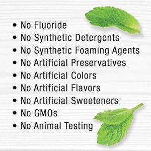 CERTIFIED NATURAL TOOTHPASTE: No fluoride, no synthetic foaming agents, no synthetic detergents, no artificial preservatives, colors, flavors & sweeteners, no GMO’s. %$#