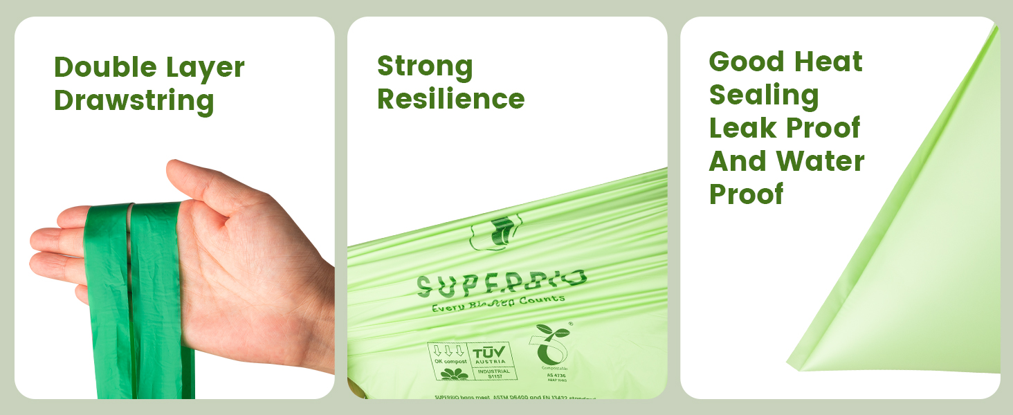 Product Features: SUPERBIO bags are guaranteed to remain strong, durable and tear-resistant when used in accordance with the recommended usage directions