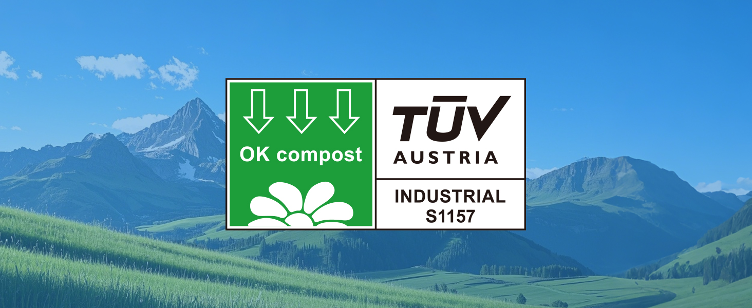 Certifications: SUPERBIO bags have been awarded official certificates from Biodegradable Products Institute (BPI) (Commercially Compostable Only) and OK compost INDUSTRIAL, SEEDLING from TÜV, meeting ASTM D6400 and EN 13432 standards